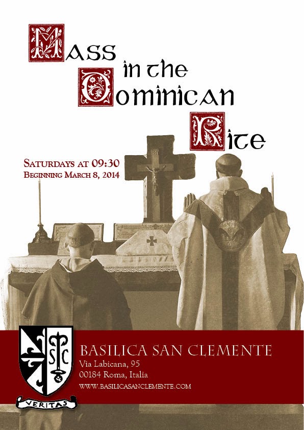 morning Dominican Rite Low Mass celebrated at the priory of San Clemente Via di San Giovanni in Laterano, in Rome. The priory of San Clemente is under the care of the friars of the Irish Province, but apparently friars of other Provinces will be assisting with the Masses as well.